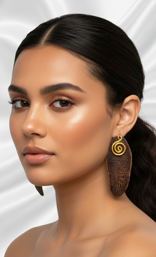 Aretes de lengüeta de la semilla de caoba y espiral en aluminio (no desmerese)
